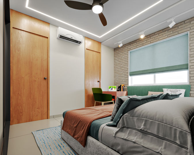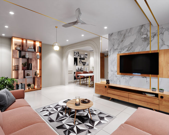 A 1650 sq.ft. residential space at Shilpan Icon, Rajkot for our clients keeping their love for simplicity in mind. A space designed for a family of 6 with the youngest one as a 6 year old.